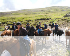 Dag 3: Ridtur - Simhall/Fri eftermiddag i Reykjavik – VandrarhemEfter frukost blir gruppen hämtad för en ridtur på Islandshästar. Vi kör till en hästgård i utkanten av Reykjavik, där alla tar med på en tur på islandshäst i dess naturliga miljö. En äventyrlig ridtur från ridcenter till lavafälten kring vulkanen Helgafell, antingen till den gamla fåruppsamlingsplatsen Kaldársel eller längs med de vackra bergssluttningarna till Hvaleyrarvatnsjön.