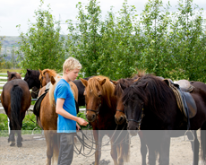 Islandshästen härstammar från de hästar som vikingarna förde med sig när de bosatte sig på Island på 900-1000-talet. Det är en stark och bekväm ridhäst, otroligt säker på foten och med ett trevligt temperament. Middag på gården/hotellet.
