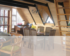 På bottenvåningen finns vardagsrum, kök och toalett och 1 enkelrum.