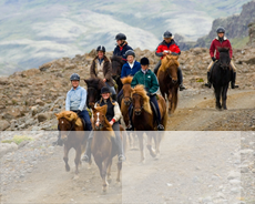 Turen stiger uppåt genom dalen Haukadalur och fortsätter längs skogsbeklädda fjällsidor. Ni rider över små bäckar och njuter av högsommarens rikliga vegetation och vilda blommor. Ni fortsätter mot höglandets hedmarker och får uppleva den succesiva förändringen i naturen ju högre upp ni kommer. En enastående vacker utsikt mot inlandets fjäll och glaciärer breder ut sig framför er på er ritt över Haukadalsheiði. (20 km)