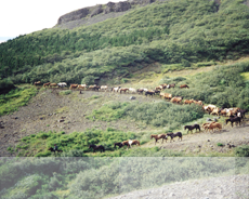 En minnesvärd dag, då ni rider längs östra sidan av nationalparken Jökulsárgljúfur och får se platser som Gloppa, Hallhöfðastígur med utsikt över bl.a. Hljóðaklettar. Ni lämnar hästarna vid Hafursstaðir och åker buss 18 km till Europas största vattenfall, Dettifoss. Där tar ni en rejäl paus för att sedan sadla på igen och fortsätter tillbaka till Bjarnastaðir. På vägen stannar ni till vid kanjonen Ásbyrgi, ett av naturens under - en vidsträckt, hästskoformad kanjon med upp till 100 m höga klippväggar. Övernattning i Bjarnastaðir (25 km).