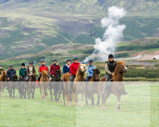 Fredag: Kálfhóll – Kaldbakur – Hrepphólar – Kálfhóll – Reykjavik Er sista riddag bjuder återigen på fantastiska vyer. Ni följer vackra ridvägar förbi fjället Galtafell och ser intressanta basaltpelare i Hrepphólar. Korsa älven Laxá innan ni når Reykjarétti, avskiljningsplatsen för boskap. Sedan svänger ni av mot älven Thjórsás stränder och följ dem tillbaka till gården Kálfhóll. (40 km). Här tar ni farväl av hästarna, guider och personal och återvänder till hotellet i Reykjavikområdet för övernattning. Åter i Reykjavik ca kl. 19.00. (40 km)